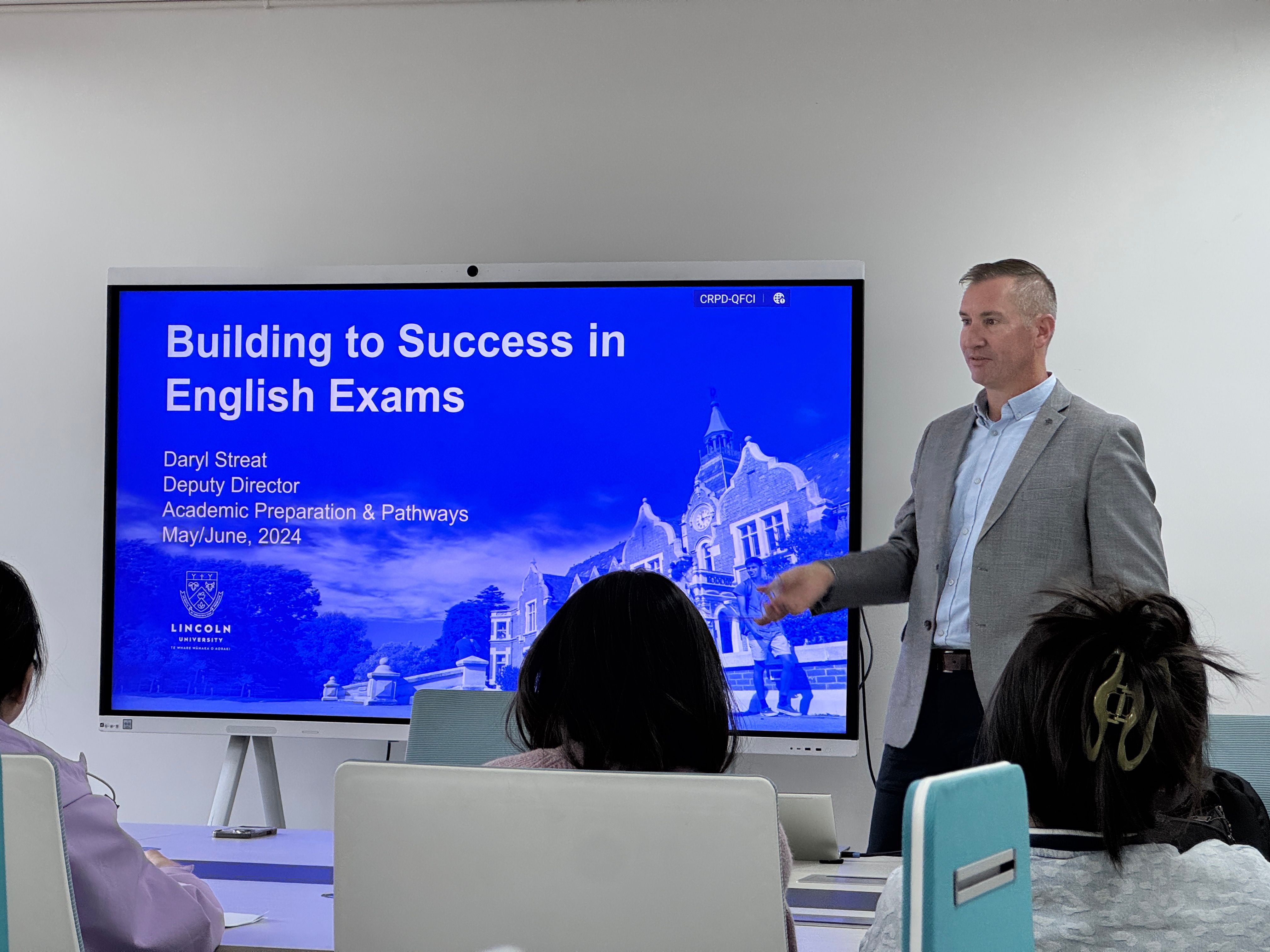 3月19日,学院邀请新西兰林肯大学学术准备与路径课程副主任(Deputy Director of Academic Preparation and Pathways)Daryl Streat来院开展英语培训,本次活动聚焦雅思考试技巧与英语综合能力提升,吸引了学院众多有志于申请国家公派留学基金项目的员工参与,学院副经理李娅主持培训会。