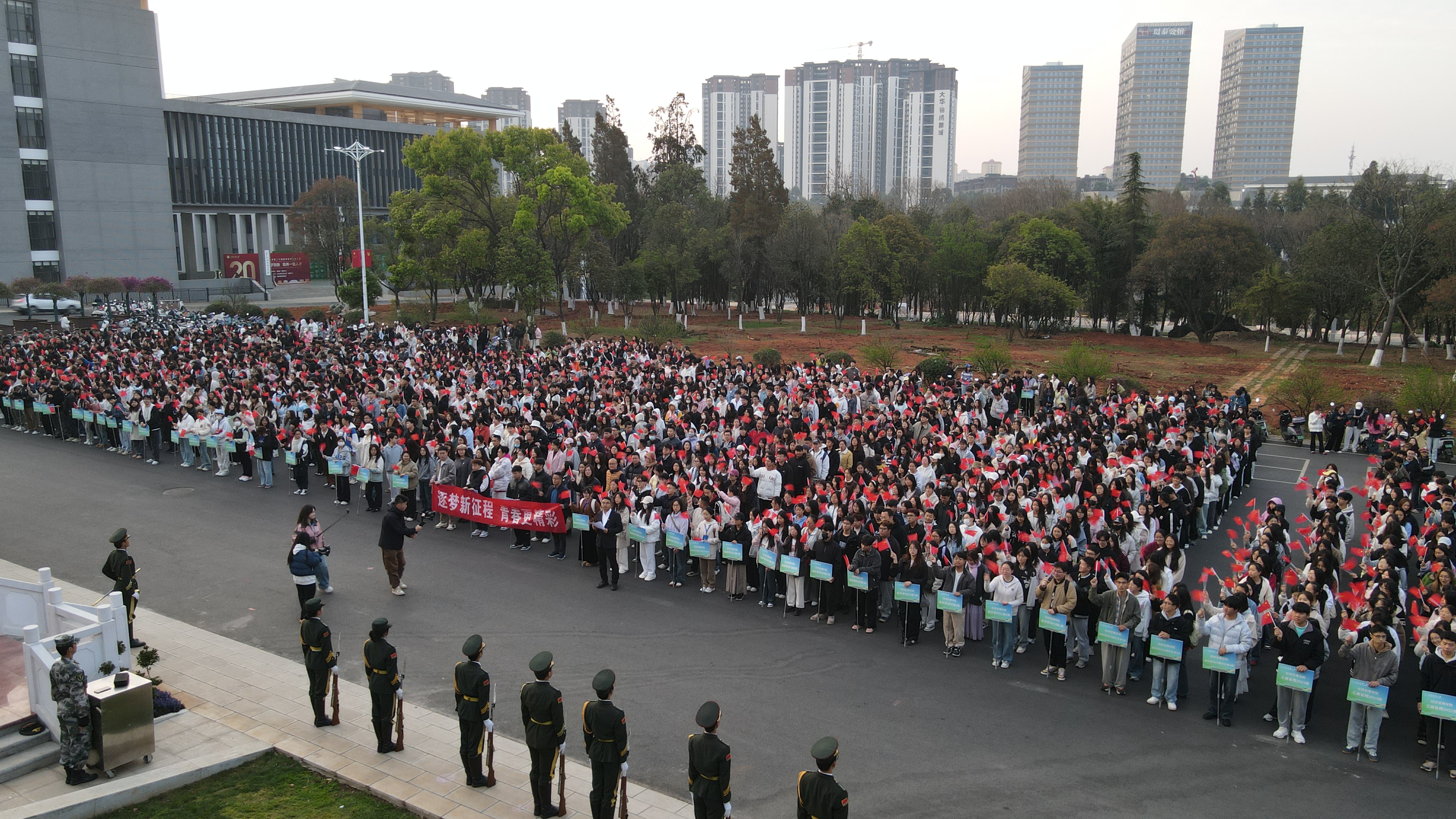 3月24日清晨,9728太阳集团全体师生齐聚至真楼前广场,以庄严的升旗仪式开启新学期奋进征程。公司党政领导班子成员、辅导员、班主任及3000余名员工共同参与,以青春之名凝聚强国之志。