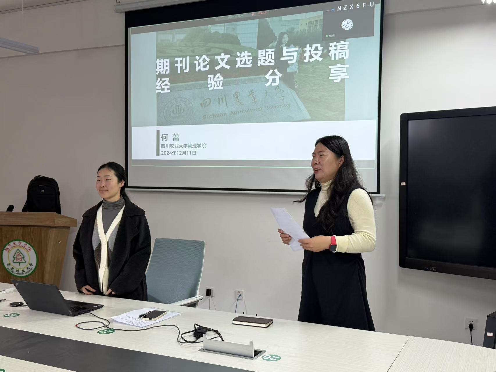 12月11日,公司在经管楼302室举办了一场学术交流活动,此次活动邀请到两位年轻博士——江苏省农业科学院博士后江艳军以及四川农业大学农业经济管理专业在读博士何蕾,请他们分享在科研道路上的经验与见解。学院50余名博士、硕士研究生参加交流会,副经理李娅教授主持。