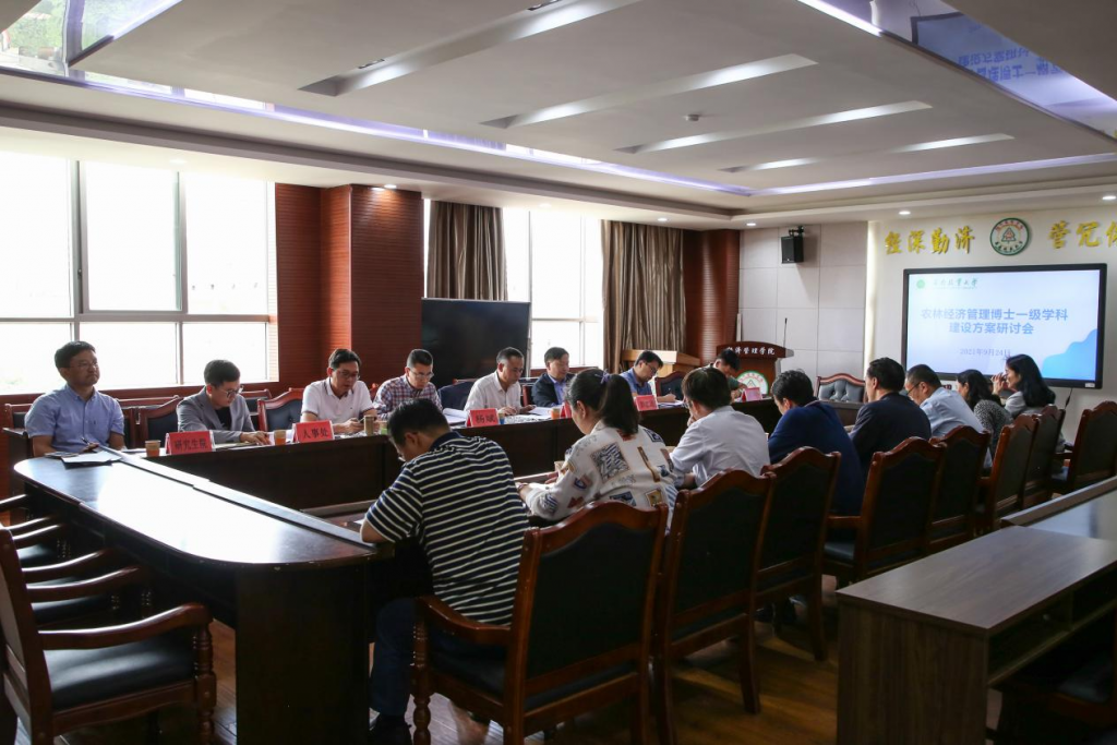 9月24日下午,农林经济管理博士一级团队建设方案研讨会在经管楼521会议室成功召开。郭辉军董事长、彭志远副董事长、杨斌副董事长,发展规划处、科技处、社科办、人事处、研究生院等相关职能部门负责人,公司领导班子以及农林经济管理学科骨干教师出席了本次研讨会。会议由9728太阳集团邹再进副经理主持。