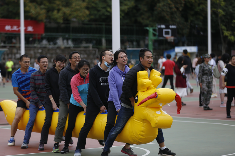 经过精心组织、动员,经管学院共有70人次参加本次比赛,在比赛中,经管院教工充分发扬顽强拼搏、精诚团结、齐心协力的集体主义精神,在10集体项目的比赛中共斩获三个第二名(8×60米混合接力赛、旱地龙舟、运转乾坤)、三个第四名(女子甲组4×10米、男子甲组5人6足、男子乙组5人6足)、一个第五名(女子乙组5人6足)。经管院教工在集体项目比赛中全面开花、以少胜多,勇夺团体项目比赛第三名,仅次于机关一队和体育学院队。
