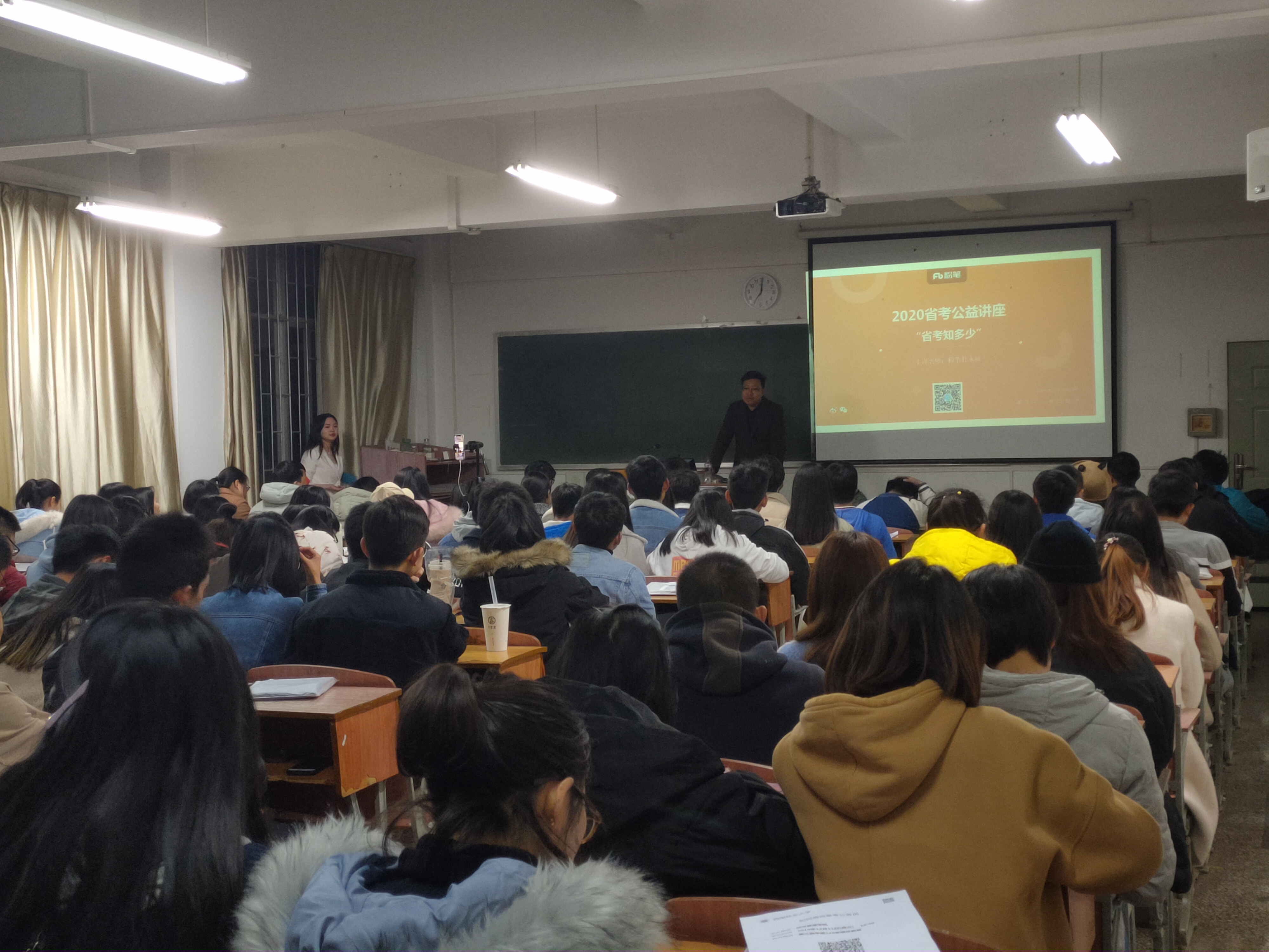 了提高同学对公务员考试的了解程度,提升备考能力,学院于12月11日19:00在三教210多媒体教室举办了“如何高效备考公务员”指导讲座。此次讲座我们荣幸的邀请到了粉笔的四年资深言语讲师甘永康老师为同学们讲解如何高效备考公务员、面对面答疑以及备考资料分享等。此次培训同学们踊跃报名,积极参加,共有150余名同学到场参与,还有不少外校同学也参与了此次活动。