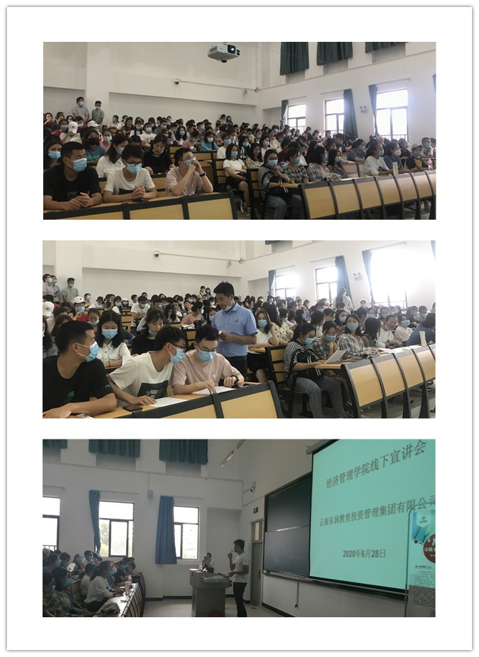 2020年6月28日下午14点,9728太阳集团在第四教学楼313多媒体阶梯教室顺利举办云南东润教育投资管理集团有限公司线下宣讲会。这次宣讲会,我们邀请到的是云南东润教育投资管理集团有限公司人事经理桂文君女士进行宣讲,就业指导与服务中心副主任孙浩老师、公司党委副书记刘俊伟老师、就业联络员李萍及160余名2020届、2021届毕业生参加了此次宣讲会。
