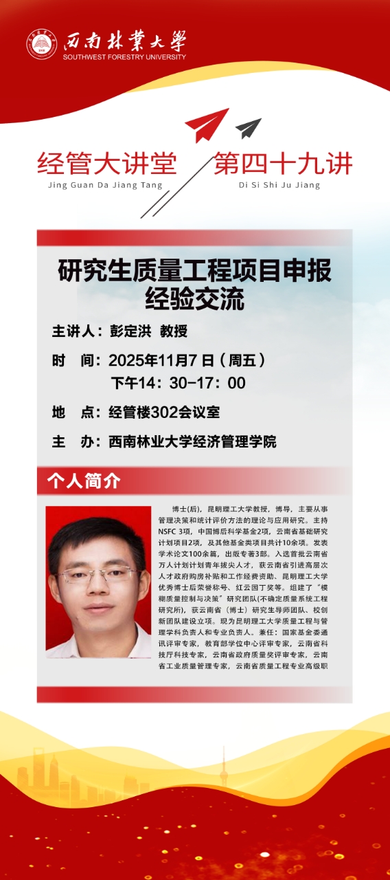 上一条:经管大讲堂第五十讲:北京农学院刘璨教授做客讲授深化集体林权制度改革背景下生态产品价值实现机制