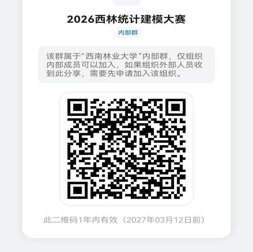 (一)校赛联系群。校赛参与者扫码加入“2026西林统计建模大赛”钉钉群,钉钉二维码附后。未尽事宜后续将在此钉钉群内通知。