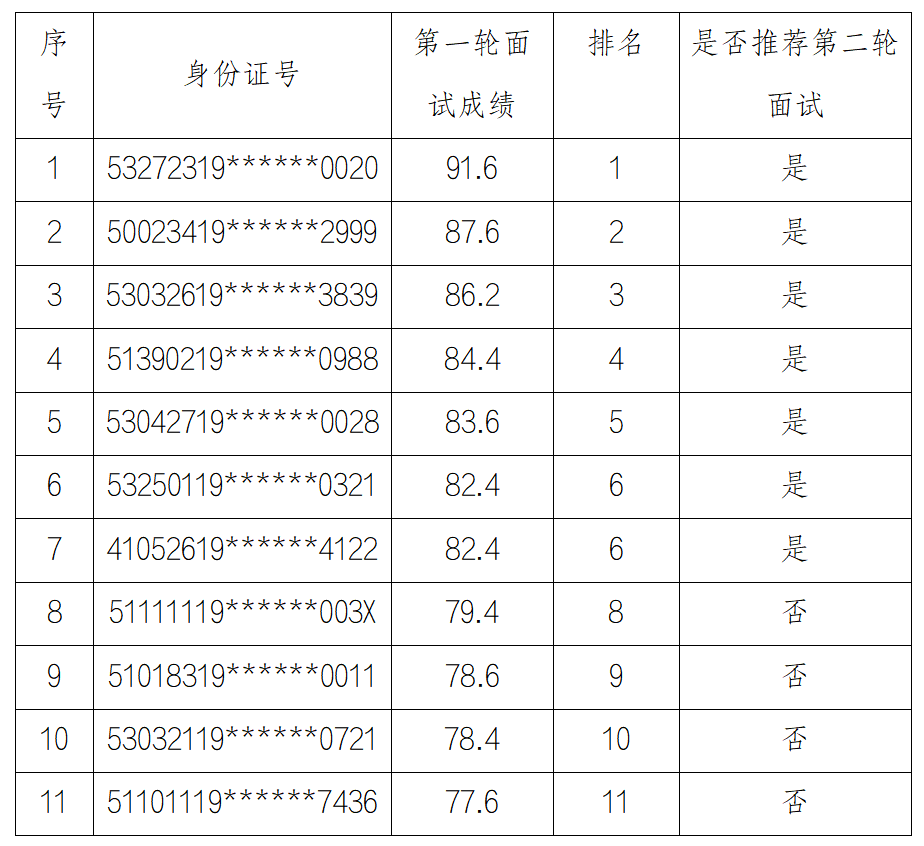 9728太阳集团2026年公开招聘博士经过网络报名、报名资格审核、院级第一轮面试考核等程序,2026年4月8日完成第一轮面试考核,现公示第一轮面试成绩和推荐进入第二轮面试人员名单如下: