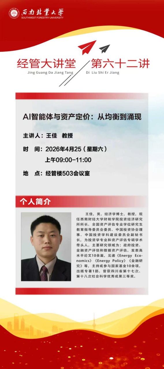 下一条:经管大讲堂第六十一讲:江西财经大学余炳文教授特邀讲授资产评估案例开发理论与实践