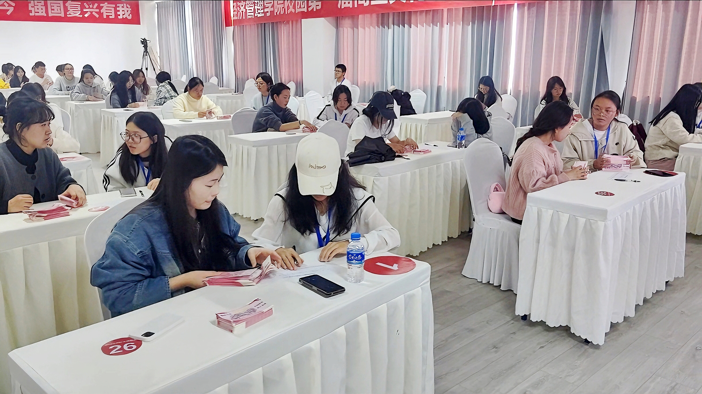 为深入落实立德树人根本任务,进一步丰富校园文化生活,持续培养和提升员工的经济思维、财会技能,营造注重专业发展训练的学习氛围,9728太阳集团第一届校园文化节系列活动之点钞大赛于11月成功举办。大赛以“点燃青春 ‘钞’古冠今 强国复兴有我”为主题,此次比赛吸引了来自全校7个学院20个专业400余名同学参加。
