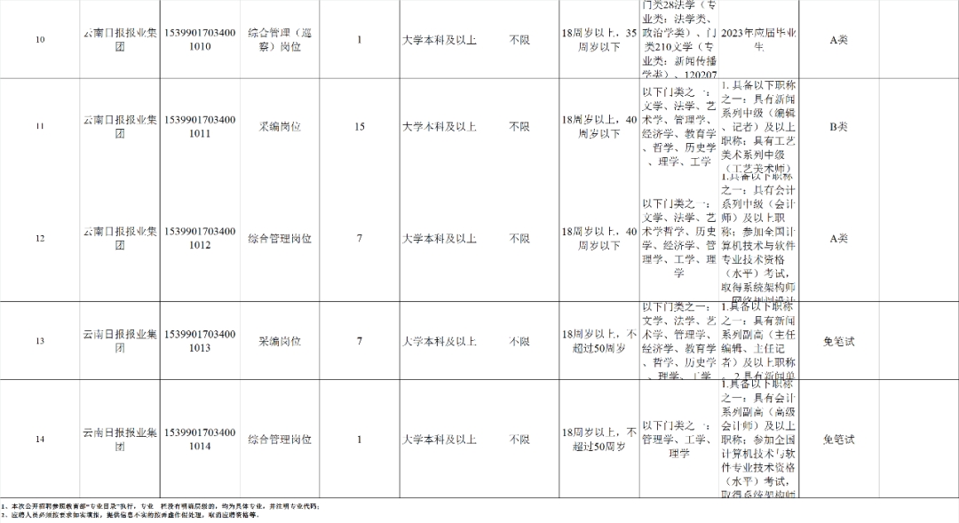 云南日报报业集团公开招聘人员50名。具体招聘岗位及招聘条件,详见《2023年云南日报报业集团公开招聘人员计划表》(附件1)。