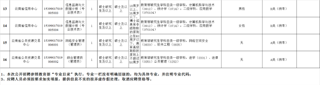 (四)云南省信用中心公开招聘工作人员4名;