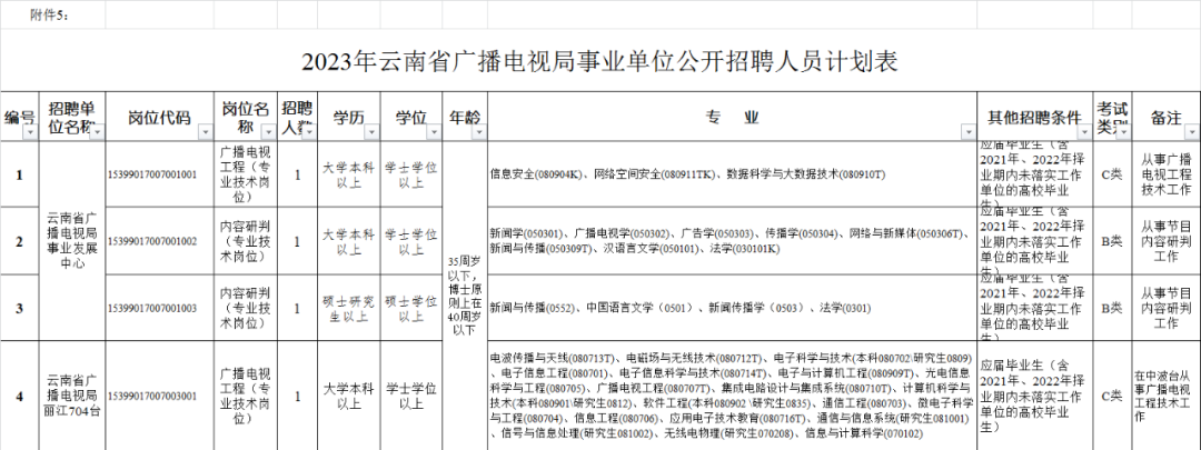 (五)云南省广播电视局昭通实验台公开招聘工作人员 1名;