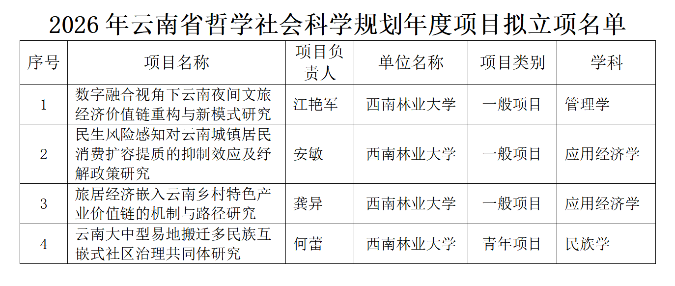 公司在2026年度云南省哲学社会科学规划项目申报工作中取得优异成绩,共有4个项目获批立项。