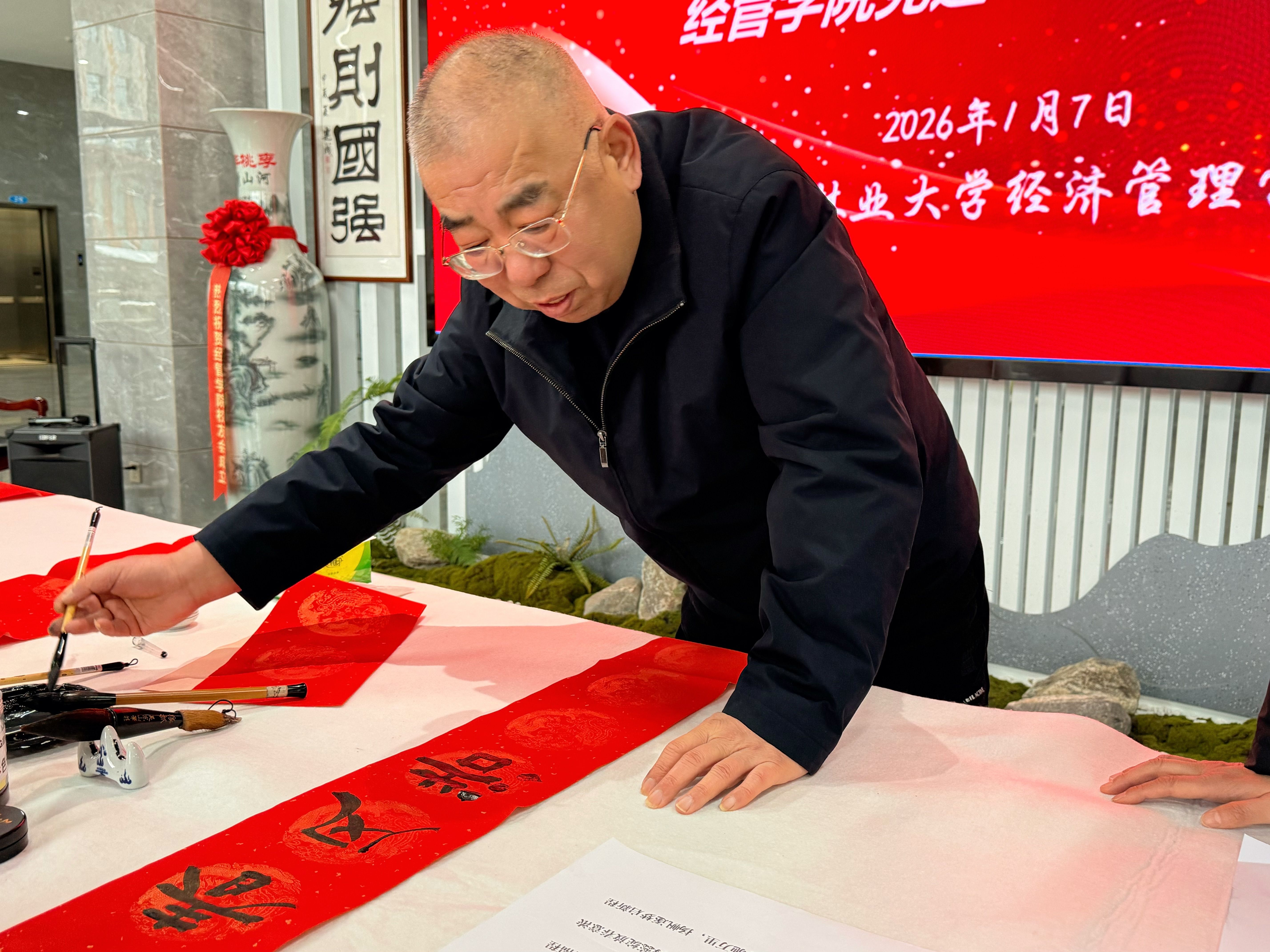 新春将至,墨香溢校园。为深入传承中华优秀传统文化,抒发全院师生对党和国家的赤诚情怀,增强学院凝聚力与师生归属感,1月7日,学院大厅内喜气洋洋、墨香萦绕,“翰墨颂党恩 春联迎新春”党建+书法文化主题活动温情启幕。学院特聘教授陈建成亲临现场挥毫泼墨,为师生送上新春“福”字与对联,以笔墨传情、以文化聚力。